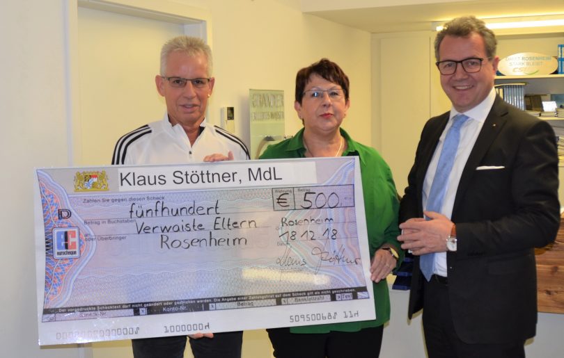 Auch in diesem Jahr hat sich Landtagsabgeordneter Klaus Stöttner dafür entschieden, keine Weihnachtskarten zu verschicken, sondern an eine gemeinnützige Organisation vor Ort zu spenden. Mit 500€ unterstützt er das Engagement der Selbsthilfegruppe “Verwaiste Eltern Rosenheim” von Sigrid und Dirk Scholz. Das Ehepaar Scholz, das den Tod der eigenen Tochter verkraften musste, gründete die Selbsthilfegruppe 2001. Seitdem leiteten sie ehrenamtlich 416 Gruppenabende und begleiteten 149 Eltern, die um 138 tote Kinder trauern. 2018 wurden ihnen der Sozialpreis des Landkreises Rosenheim verliehen. Klaus Stöttner, MdL: “Ich habe großen Respekt vor dem ehrenamtlichen Engagement von Sigrid und Dirk Scholz. Sie begleiten und helfen vielen verzweifelten Eltern, die den tragischen Verlust eines Kindes verkraften müssen.” Weitere Informationen gibt es unter: www.verwaisteelternrosenheim.de