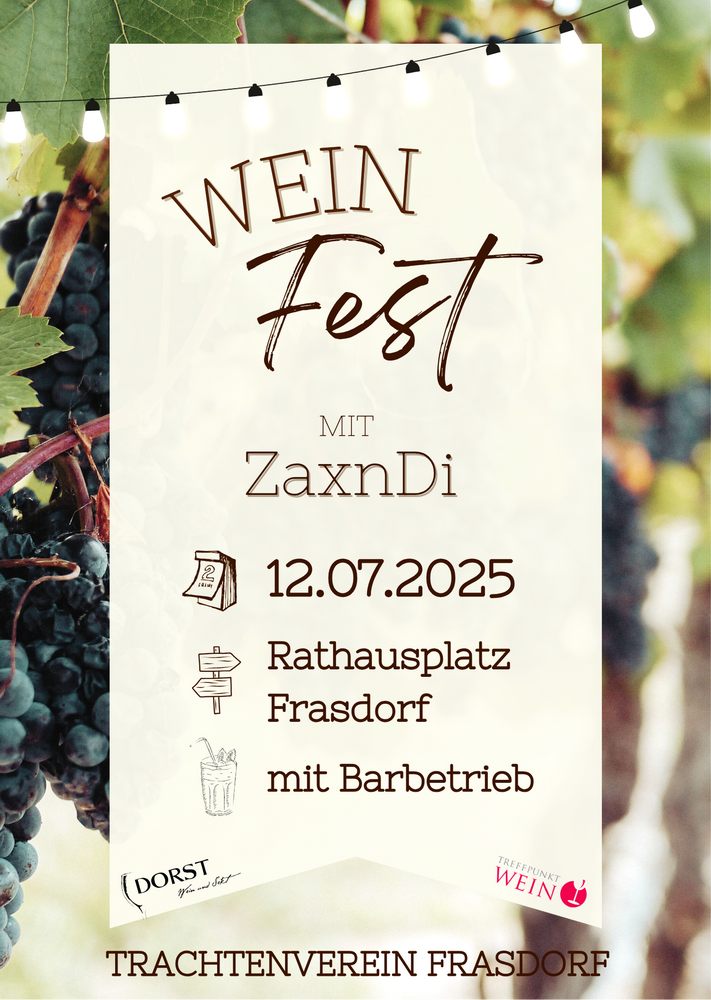 Zu einem gemütlichen Weinfest lädt der Trachtenverein „Lamstoana“ am Samstag, 12. Juli nach Frasdorf ein. Beginn ist bei freiem Eintritt um 19 Uhr am Rathausplatz.