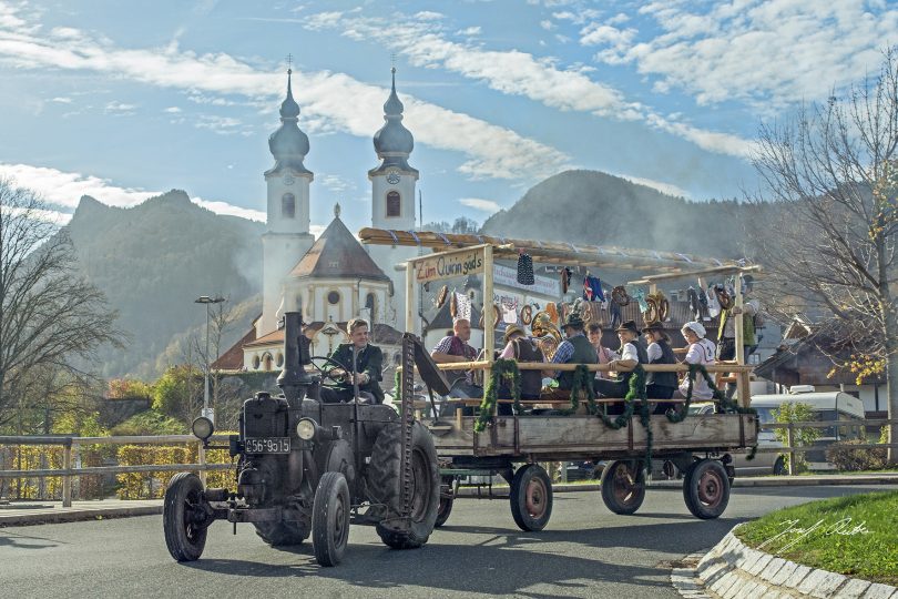 Weisertweckenfahren dem kleinen Quirin zur Ehre – Die Aktiven vom Trachtenverein Edelweiß Niederaschau lassen alte Traditionen nicht aussterben. Mit einem meterlangen Weisertwecken machten sie sich auf den Weg von Aschau nach Weisham. Dabei ging es recht lustig zu. Die Straßen wurden immer neu vermessen, der Verkehr geregelt und alles fotografisch protokolliert. A zünftige Musi und a Schnapserl durften nicht fehlen. Am späten Nachmittag wurde der Wecken dann den glücklichen Eltern des kleinen Quirin übergeben.