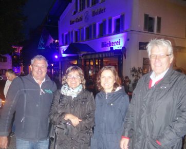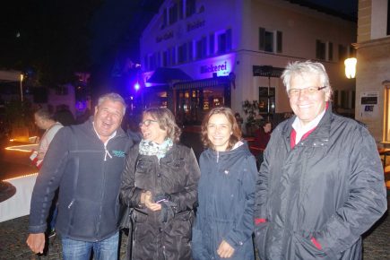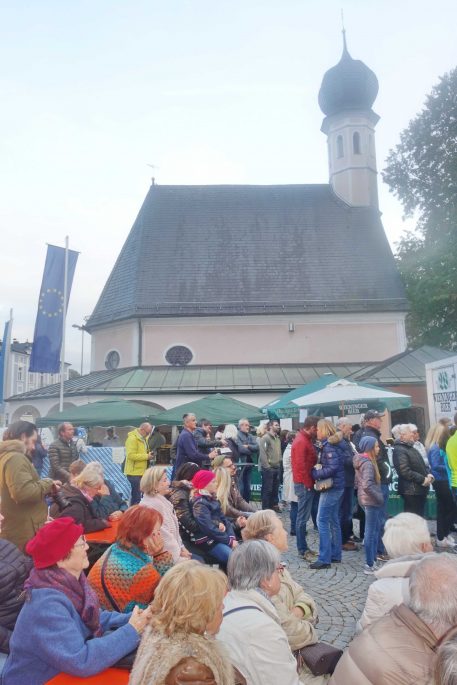 Lautstark angeschossen wurde das „Weiss-Blaue Licht“ von den Mitgliedern der Ludwig-Thoma-Schützen aus Prien. Musikalisch wurde die Weiß-Blaue Nacht von zum Teil wandernden Musikanten (Paul Stowe, Los Krawallos bei Felicitas Second Hand, Erima Stax bei Seeoptik, 3 Extra im Bistro Bagaatelle) bereichert, zudem gab es ein attraktives und aktives Rahmenprogramm. Helga Schömmer führte ab dem Heimatmuseum durch den Ort und die Katholische Pfarrgemeinde lud zu einer Kirchenführung mit Taschenlampe ein, daran beteiligen sich mit Cornlia Gaiser über 40 Personen. „Für 2019 haben wir schon überlegt, über wir dann eine eigene Führung zum Deckengemälde mit der Seeschlacht von Lepanto machen werden“, so Tobias Gaiser nach seiner Rückkehr. Gut besucht waren auch das Priener Heimatmuseum (mit der jüngst eröffneten Ausstellung mit Werken des Aschauer Malers Franz-Josef Feistl) sowie die Galerie im Alten Rathaus, die nicht nur die neueste Ausstellung „Menschenbilder“ mit international beachteten Werken des Künstlers Armin Müller-Stahl, sondern auch mit einem weiss-blauen Begrüßungs-Cocktail erfreute. Für die gastronomische Versorgung stellten sich an diesem Abend die lokalen Wirte Fischer am See und Manfred Mitterer sowie ein Stand mit Kaffee und Flammkuchen von Dagmar Försterling („Kugel Frieda“) zur Verfügung. Krönender Abschluss dank des Wetterglücks waren trotz einiger Regentropfen die zweite Modenschau im blauen Abendlicht sowie das am Friedhof-Parkplatz von der Firma Sauer aus Gersthofen abgeschossene Feuerwerk. Die Geschäfte konnte noch bis 23 Uhr geöffnet bleiben, nach seinem abendlichen Rundgang sagte Dr. Herbert Reuther von PrienPartner: „In allen zehn Läden, in denen ich jetzt war, herrschte große Zufriedenheit, es wurde nicht nur geschaut, informiert und geratscht, sondern auch gekauft“. Zufrieden war auch Hauptorganisatorin Eleonore Maier als Assistentin des PrienPartner-Vorstandes und sie blickte bereits nach vorne, denn sie lud noch für das Erntedankfest ein, das unter dem Motto „Handgemacht“ am Sonntag, 7. Oktober von 10 Uhr bis 18 Uhr in der Fußgängerzone am Marktplatz stattfindet und aus dessen Anlass die Priener Geschäfte wieder nach altem Marktrecht von 13 Uhr bis 17 Uhr geöffnet haben.