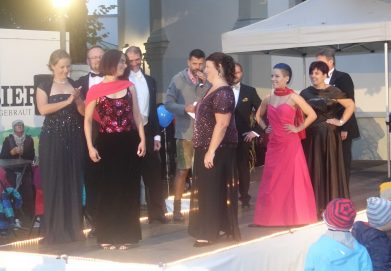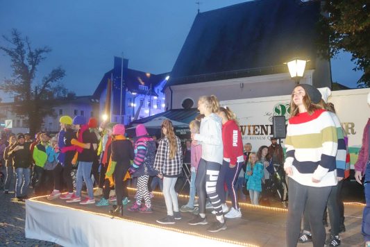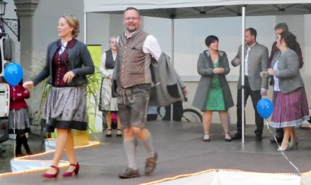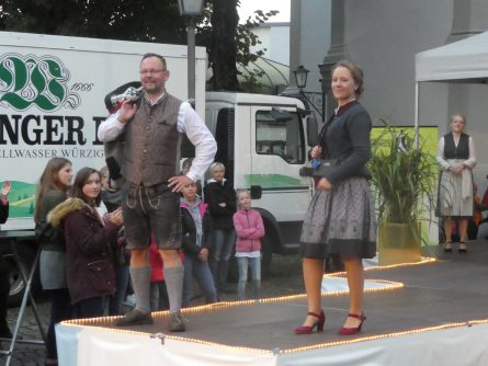 „Heute wollen wir mal wieder zeigen, was wir in Prien so alles haben“ – mit diesen Worten fasste PrienPartner-Vorstand Dr. Herbert Reuther das Vorhaben seines Vereins zusammen und er bedankte sich dabei im Beisein von Priens Zweiten Bürgermeister Hans-Jürgen Schuster für den Zusammenhalt der Priener Firmen und Betriebe und vor allem auch bei Geschäftsführerin Andrea Hübner von der Prien Marketing GmbH und ihrer Mitarbeiterschaft für deren großartige Unterstützung. Es war heuer die dritte Weiß-Blaue Nacht, deren positive Entwicklung zeigte sich bereits bei der Modenschau, die umfangreicher war als die ersten beiden Jahre zuvor. Moderator der Modenschau war Wolfgang Sedlmeir (Servus Heimat), der mit Fachkenntnis und Humor gleichermaßen die verschiedenen Vorstellungen erläuterte. „In Prien haben wir keine abgehungerten Magermodels, hier zeigen wir selbstbewusst wer und wie wir sind und wie gut man sich in Prien einkleiden lassen und anziehen kann“, so der Moderator, der von ganz Klein bis zu den Erwachsenen Gruppierungen hatte, die in monatelanger Vorbereitung durch die örtliche Tanzschule Wangler ihre Auftritte einstudiert hatten. Jeweils eigene Laufsteg-Präsentationen hatten das Priener „Wollwerk – Made am Chiemsee“ (individuell gestrickte Hauben, Pullis, Schals, Mützen – alles mit Wolle aus dem Unterfell der Kaschmirziege), das in Prien an zwei Standorten aktive Unternehmen „Sport Kaiser“ mit sportlich-gefälliger Kleidung, das Geschäft „Chiceria“ (Extravagante Mode und Fesche Tracht), Katrin Anner mit ihrem Angebot „Dein Stil. Mode und Schönes für Zuhause“, das Geschäft Damen- und Herrenmode Haider am Marktplatz sowie zuletzt und als Höhepunkt die Westermeyr Gerdi GmbH Modehaus in Prien, das jüngst wieder an ihren Stammplatz in die Jensenstraße zurückgekehrt ist und deren Senior-Chefin Gerdi Westermeyr in diesen Tagen das 60jährige Meisterjubiläum feiern kann. Zum Schluss der Modenschau überreichte Evi Kaiser an Moderator Wolfgang Sedlmeir ein Geschenk, der sich darüber freute und sagte: „Das habe ich gerne gemacht, denn Prien ist ein spannender Ort mit vielen lässigen Geschäften und genialen Läden“. Zugleich bedankte sich Sedlmeirr bei der Tanzschule Wangler, die im Karten-Schmid-Haus Kleinkindern ab zwei Jahren, Kids, Jugendlichen sowie Erwachsenen (u.a. mit Paar-Solo-Tanzen) die Freude am Tanzen vermittelt.