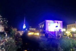 Bereits bei der ersten Modenschau begannen ringsum um den Marktplatz die verschiedensten Gebäude und Plätze in zumeist blauer Farbe zu leuchten. Sogar am Campingplatz Harras ließen mehrere Strahler die Hauptplätze in blauem Licht erstrahlen, wie Betreiber Klaus Ritzinger als Mitglied der PrienPartner auf dem Marktplatz erläuterte.