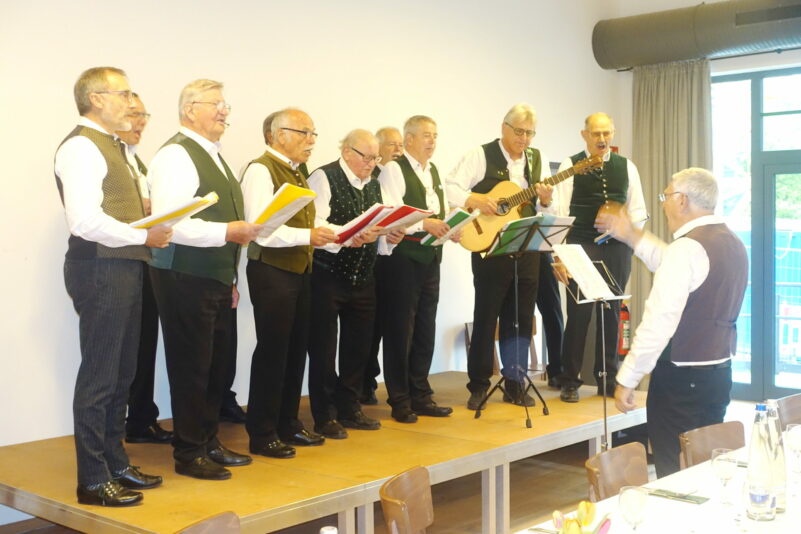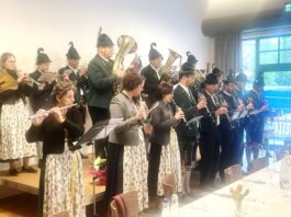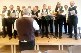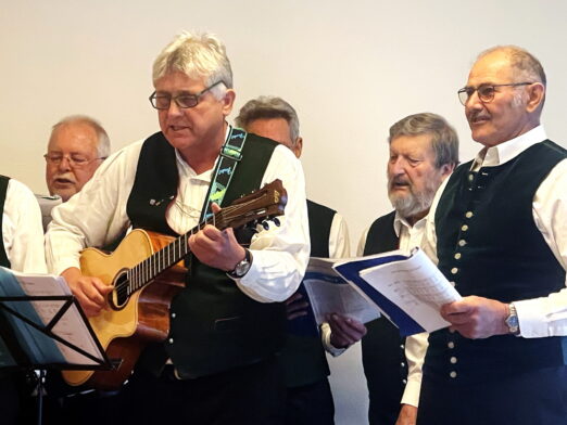 Arg heiter begann die Geburtstagsfeier von Klaus Daiber im voll besetzten Saal des Gasthofes Kampenwand durch den (Alt-)Bürgermeister-Chor aus dem Landkreis Rosenheim. 13 Männer (unter ihnen auch MdL a.D. Sepp Ranner) unter der Leitung von Werner Weyerer aus Aschau i. Chiemgau erfreuten mit fröhlichen Liedern sowie mit Gitarrenbegleitung durch Bürgermeister Bernd Feßler aus Großkarolinenfeld. Dieser bedankte sich dann namens aller Sänger und Bürgermeister-Kollegen und auch im Namen des Bayerischen Gemeindetages mit einem Geschenk bei Klaus Daiber für dessen langjährige Mitgliedschaft im Chor und lud ihn auch zum Mitsingen ein. Dabei konnte es sich Bernd Feßler nicht verkneifen, auf einige Anekdoten und Versäumnisse des Jubilars im Rahmen von Chor-Auftritten hinzuweisen. Die Bandbreite des musikalischen Angebotes in der Chiemsee-Gemeinde Bernau kam zum Ausdruck durch Willkommensgrüße durch die Hafenstoana Alphornbläser, durch Geburtstagsweisen der in großer Besetzung mit Dirigent Albert Osterhammer aufspielenden Musikkapelle Bernau und durch passende Unterhaltungsweisen der „Noagal-Musikanten“. Während sich die Geburtstagsgäste am abwechslungsreichen Büffet bedienen und erfreuten konnten, gab es immer wieder Gelegenheit, sich bei Klaus Daiber persönlich für dessen berufliches und ehrenamtliches Engagement zu bedanken. Abordnungen aus den Reihen der Oberbayerischen Sportschützen sowie viele Vertreter von Bernauer und Hittenkirchener Ortsvereinen nutzten die Einladung, um Danke zu sagen für langjährige Mitarbeit und vielfältige Unterstützung. Eine besondere Überraschung hatte die Familie des Jubilars noch vorbereitet. Tochter Irene, Bürgermeisterin und damit Nach-Nachfolgerin im Amt ihres Vaters überreichte mit ihrer Familie und Freunden einen Gutschein für einen neuen Fernsehsessel. Auf weitere Geschenke hatte Klaus Daiber im Vorfeld bereits verzichtet, da er mit der Einladung um eine Spende für die Bürgerhilfe Bernau bat.