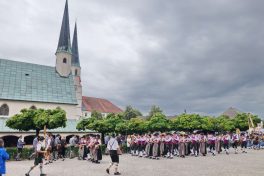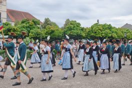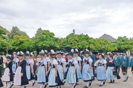 Beeindruckende Zahlen hat das Gaufest des Gauverbandes I beim Volkstrachtenverein von Altötting geboten: Rund 7.000 Festzugteilnehmer, etwa 14.000 Zuschauer, 177 Vereine und 38 Musikkapellen waren dabei. Nach dem Festzug waren sie untergebracht in zwei großen Festzelten und versorgt wurden sie von Festwirt Manfred Werner aus Kolbermoor. Er hatte sich (unter anderem) mit 4.500 halben Hendl und mit 140 Angestellten (40 davon in der Küche) sowie mit 120 ehrenamtalichen Austrägern um die Versorgung der Gäste in den Festzelten gekümmert.