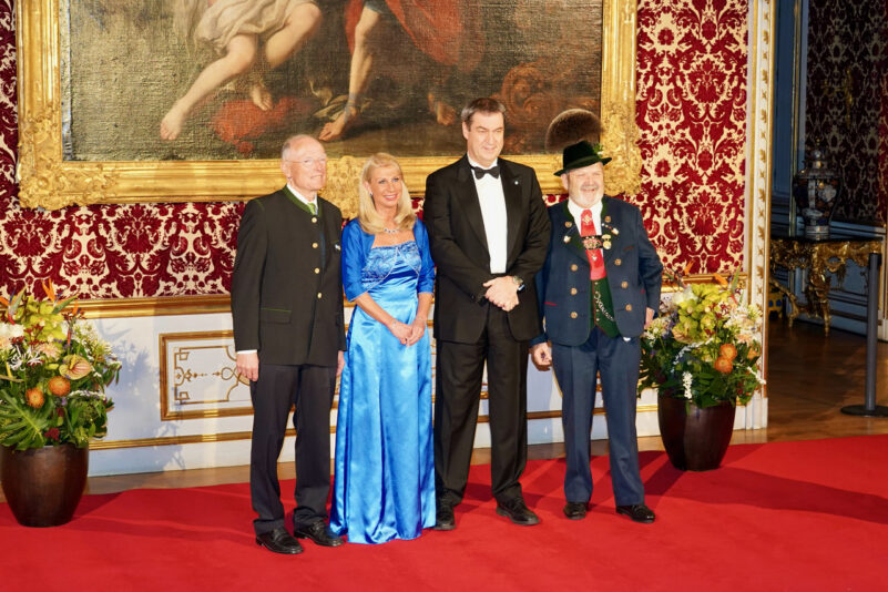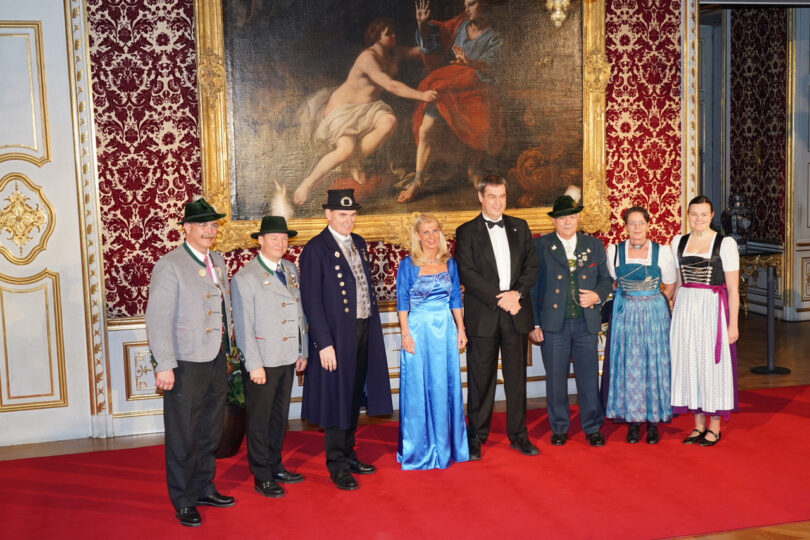 Ministerpräsident Dr. Markus Söder rief und alle kamen: Spitzenrepräsentanten des politischen, kirchlichen und gesellschaftlichen Lebens, aber auch Vertreter der Bürgerallianz Bayern und der Traditionsverbände sowie eine große Zahl ehrenamtlich tätiger Frauen und Männer aus ganz Bayern waren zu Gast beim Neujahrsempfang des Bayerischen Ministerpräsidenten in der Münchener Residenz. Dr. Markus Söder und seine Frau Karin Baumüller-Söder brauchten schön eine gehörige Ausdauer, als sie beim Defilee der Gäste insgesamt 1.800 Personen die Hand schüttelten und ein „gutes Neues“ wünschten. Zweimal musste dieses wichtigste politisch-gesellschaftliche Großereignis des Jahres wegen der Pandemie ausfallen, jetzt war die Freude groß, wieder so viele Gäste begrüßen zu können. Zur Einstimmung in das neue Jahr waren die Schäfflertänzer als traditionelle Mutmacher ebenso präsent, wie die Kaminkehrer als Glücksbringer. Nach dem Defilee richtete der Ministerpräsident im Kaisersaal der Residenz eine kurze Ansprache an die Gäste: „Wir begrüßen 1800 Gäste aus Gesellschaft, Sport, Kultur, Wirtschaft, Politik und Kirche. Ich blicke optimistisch in die Zukunft. Mit Zusammenhalt und einem klaren Plan werden wir auch die Krisen gut meistern.“ Er betonte die starke Position Bayerns nach der Coronakrise und zeigte sich zuversichtlich, dass der Freistaat die anstehenden Probleme lösen wird. Beim anschließenden Staatsempfang hatten die Gäste dann die lange vermisste Gelegenheit, sich wieder in persönlichen Gesprächen auszutauschen.