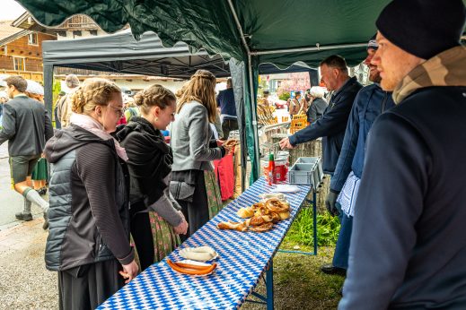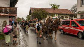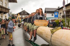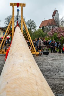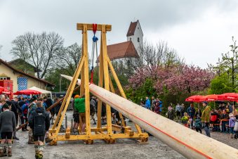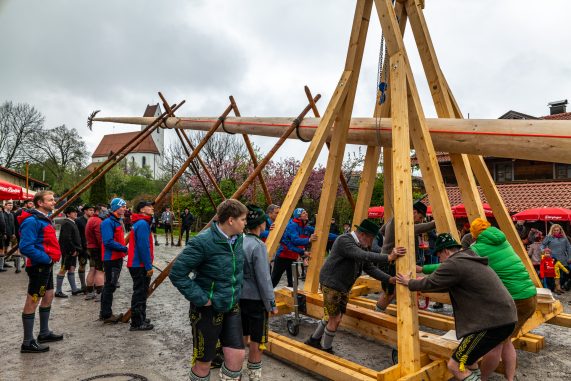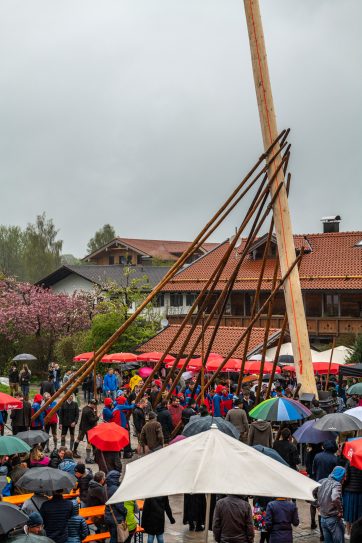 So wie es am 1. Mai in Bayern der Brauch ist, dass in den größeren Orten und in deren Mitte ein Maibaum aufgestellt wird, so ist es in der Dorfgemeinschaft von Grainbach auf dem Samerberg der Brauch, dass das Maibaumaufstellen vom Zeitpunkt des Fällens bis zum Anbringen der Figuren vom örtlichen Trachtenverein Hochries-Samerberg und von der Freiwilligen Feuerwehr gemeinsam durchgeführt wird. Viele Männer sind ja in beiden Vereinen aktiv tätig, so dass sich ein Miteinander-Anpacken auch wieder wie selbstverständlich ergeben hat.