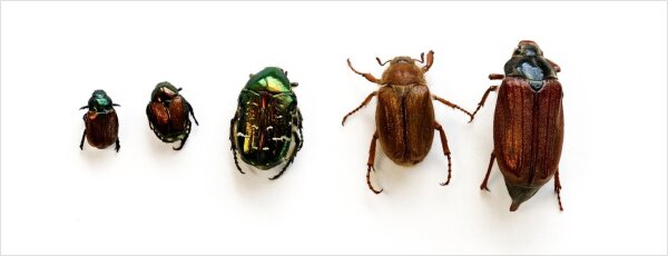 Das Titelfoto zeigt einheimische Blatthornkäfer im Vergleich mit dem Japankäfer