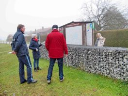 Fotos: Hötzelsperger – Eindrücke vom Ortstermin in Prien-Atzing zur Optimierung der Wander-Informationen – von links Nina Kolibius Kolibius (PriMa), Peter Böttinger, Claus Linke und Andrea Hübner.