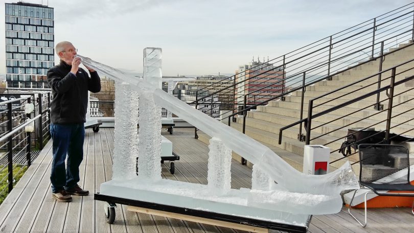 Kürzlich spielte der international bekannte Alphornexperte und Alphornbauer Franz Schüssele beim Out Of The Box Festival in München das erste aus Eis gebaute Alphorn der Welt zusammen mit andern aus Eis gebauten Instrumenten. Der in der Schweiz lebende fränzösische Eiskünstler Eric Mutel hatte es eigens für das 20-jährige Jubiläumskonzert des Norwegischen Eismusikers Terje Isungset in einem Kühlwagen bei Minus 20 Grad Celsius nach Angaben von Franz Schüssele gebaut.