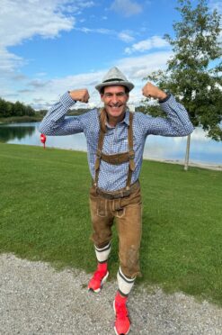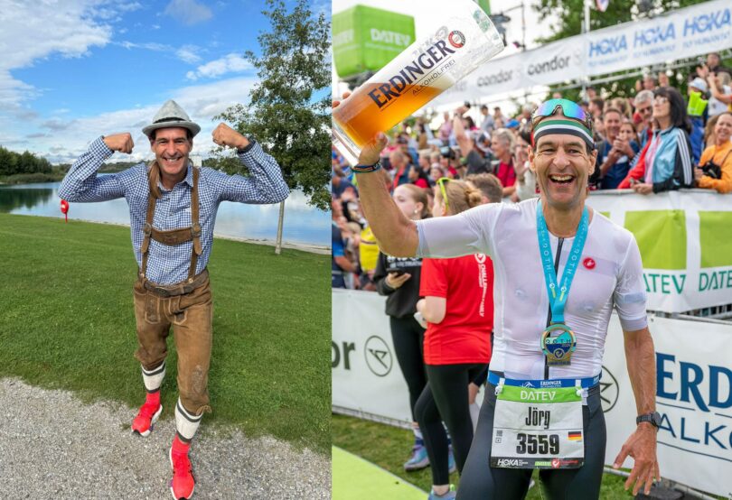 Was sich wie ein Gag anhört, ist in Wirklichkeit eine sportliche Herausforderung mit klaren Regeln. Damit der Lauf offiziell als „Weltrekord im Trachtenlauf“ gewertet wird, müssen originalgetreu Hosenträger, Trachtenhemd, Kniestrümpfe und ein traditioneller Hut getragen werden. Nur bei den Schuhen macht Guinness eine Ausnahme. Laufschuhe sind erlaubt. „Das Outfit wird heißer als jede Bestzeit“, lacht Jörg. Der gebürtige Rheinländer arbeitet Vollzeit, ohne Homeoffice-Möglichkeiten. Den Trainingsplan passt er rund um seinen Beruf und das Familienleben an. Seine Frau, selbst sportlich aktiv, steht dabei voll hinter ihm. Der leidenschaftliche Läufer hat bereits zahlreiche Marathons hinter sich und engagiert sich seit Jahren in der regionalen Laufszene, organisiert Lauftreffs und Trainingscamps in seiner Heimatregion und motiviert so viele andere Hobbyläufer. In voller Tracht zu laufen, ist aber auch für ihn Neuland. Unterstützt wird er von seiner privaten Laufcrew – darunter Susan, Fabian und Thorsten, die als offizielle Zeugen mitlaufen. Denn das Reglement von Guinness World Records schreibt vor, dass diese den Rekordversuch lückenlos überwachen müssen. Ebenso mit dabei: das ERDINGER Active TEAM. Seit 2017 ist Peters aktives Mitglied der Ausdauersportcommunity der bayerischen Privatbrauerei, seit 2019 sogar Botschafter für die Region Köln. ERDINGER begleitet seinen Botschafter nicht nur durch die Bereitstellung von Outfit und Startplatz, sondern vor allem mit jeder Menge Motivation, Teamspirit und natürlich dem ein oder anderen isotonischen Durstlöscher zur Regeneration nach harten Trainingseinheiten.