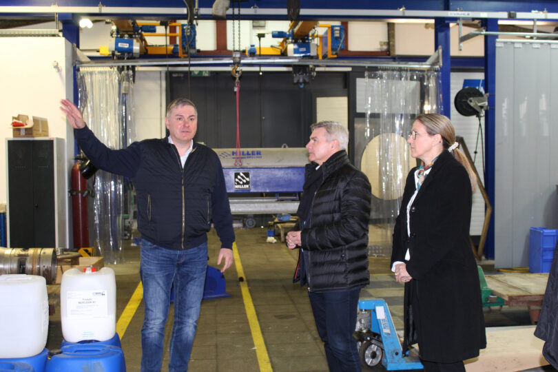 Bericht und Foto: LRA Landshut – Landrat Peter Dreier und Bürgermeisterin Sibylle Entwistle erhielten einen Einblick in die Arbeiten der Hiller GmbH von Geschäftsführer Dietmar Heller.