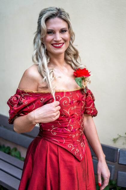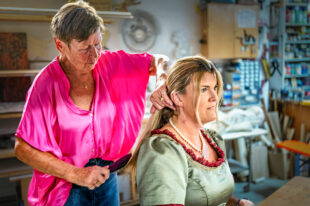 Farbenpracht und Bühnenzauber – die Kostüme des Bayerischen Jedermann Nicht nur das Schauspiel selbst, auch die aufwendig gestalteten Kostüme machen den „Bayerischen Jedermann“ zu einem unvergesslichen Erlebnis. Die Darstellerinnen auf dem Foto verkörpern mit ihren farbenfrohen Gewändern die ganze Vielfalt und Opulenz einer Theateraufführung, die bis ins kleinste Detail liebevoll gestaltet ist. Jede Robe ist ein handwerkliches Kunstwerk – vom fließenden Stoff bis zu den feinen Stickereien. Ob in kräftigem Smaragdgrün, leuchtendem Purpur oder zartem Pastell – die Kleider unterstreichen nicht nur die Rollen der Figuren, sondern schaffen auch ein harmonisches Gesamtbild auf der Bühne des Neubeurer Marktplatzes. Verantwortlich für diese prachtvolle Garderobe ist Petra Martin, die mit sicherem Gespür für Stoffe, Farben und historische Anmutung sämtliche Kostüme entworfen und angefertigt hat. Mit ihrer Kreativität und ihrem handwerklichen Können hat sie maßgeblich dazu beigetragen, dass das Publikum für einige Stunden in eine andere Zeit eintauchen kann.