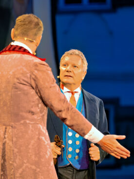 Die gestrige vorletzte Aufführung war erneut ein intensives Erlebnis. Die vollbesetzten Ränge auf dem malerischen Marktplatz boten das perfekte Publikum für ein Spiel, das Himmel und Hölle, Reichtum und Reue, Leben und Tod eindrucksvoll gegenüberstellt.