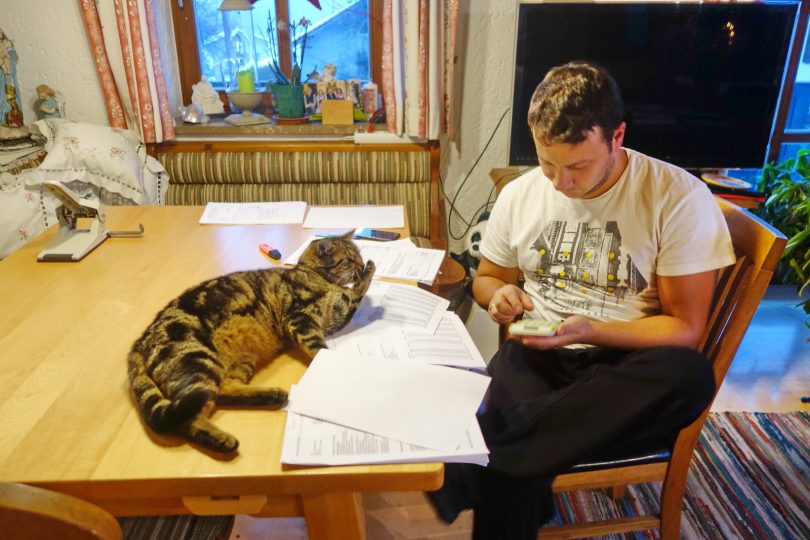 Es ist bekannt, dass Katzen von Natur aus neugierig sind und sich überall wo es gemütlich und warm ist ein Plätzchen suchen. Eher ungewöhnlich ist es, wenn sich eine Katze für die Büroarbeit interessiert. Diesen Eindruck erweckt jedenfalls der Kater Tapsi wie auf unseren Bildern zu sehen ist.