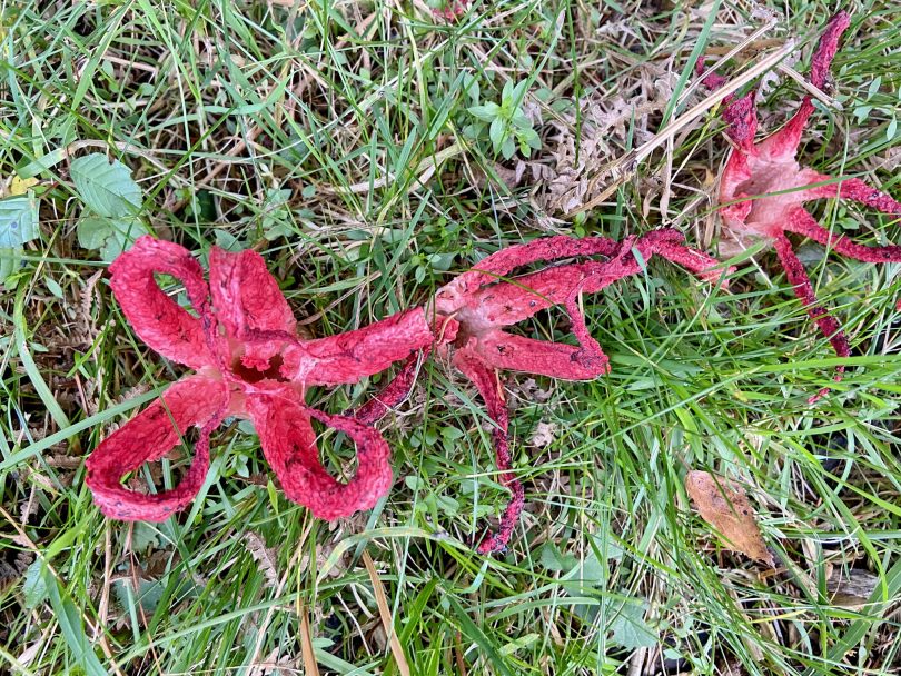 Erste Antwort: Ich habe den Pilz vor einigen Jahren am Spitzstein erst gerochen, dann gesehen: in meinem Pilzbuch war er als Tintenfisch-Pilz, Tintenfisch-Gitterling oder Krakenpilz bezeichnet. Gehört zu den Stinkmorcheln. Herzliche Grüße aus Hemhof Alois Loferer