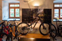 Besonderer Hingucker war die zentral im Raum stehende Profiwerkstatt, in welcher mit hochmodernen Werkzeugen auch komplizierte Arbeiten an eBikes, Federgabeln oder hydraulischen Bremsen vorgenommen werden. Durch die Strecken im Bikepark hat das Mechaniker-Team ein besonders hohes Fachwissen für Federelemente an Fahrradgabeln und Dämpfern erlangt. An der Cafeteria gab es kostenlose Brotzeit, auch wenn – der vielen Besucher wegen – die Weißwürste pünktlich zu Mittag aus waren. Testfahrten auf den neuen preisgünstigen Ghost eBikes führten zu zahlreichen Sofortkäufen. Diese zusätzlichen Räumlichkeiten, das sogenannte Werk 2 des Bikepark Samerbergs, sollen vor allem mehr Platz für die Werkstatt und Ausstellungsflächen für Räder jeder Preisklasse bieten. Im bisherigen Laden wurde dafür die Fläche zu klein.