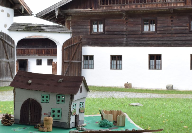 Die Kinder entdecken die verschiedenen Häuser auf dem Museumsgelände, basteln sie nach oder gestalten einen eigenen Hof. Der Kreativität sind keine Grenzen gesetzt: Soll ein typischer Vierseithof aus der Region nachgebaut werden, bei dem der landwirtschaftliche Wirtschaftshof von allen vier Seiten mit Gebäuden umschlossen ist? Oder wird es doch ein einzelner Einfirsthof, wie der Bartlhof, mit einem schönen Garten neben dem Haus? Naturmaterialien wie zum Beispiel kleine Steinchen oder Ästchen können beim Rundgang des Museums gefunden und verwendet werden. Für die Werkstatt ist keine Anmeldung erforderlich, Familien mit Kindern ab sieben Jahren können einfach vorbeikommen und mitmachen.