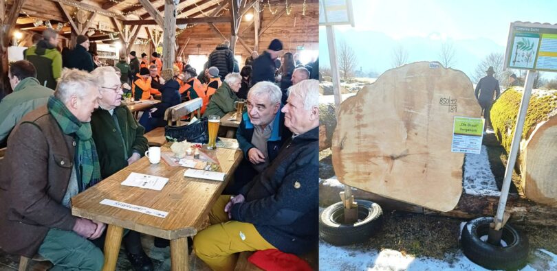 Bei den Nadelhölzern spielt neben Dimension und Qualität der Standort eine wichtige Rolle. Für die Wertholzerziehung in jungen Jahren ist es sinnvoll, die untersten Äste zu entfernen, die sogenannte Wertastung. Anschließend bilden sich Jahrringe ohne Asteinschlüsse. Ziel sind 50 Prozent Stamm mit mindestens sechs Meter Astung und 50 Prozent grüne Krone. Im Anschluss an die Ergebnisse der Submission gab es gut besuchte Führungen des AELF Traunstein über den Submissionsplatz an. Am Nachmittag wurde der stellvertretende bayerische Ministerpräsident Hubert Aiwanger erwartet (wir berichten in der nächsten Ausgabe).