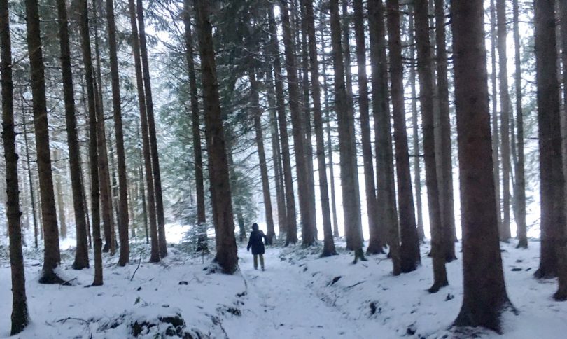 Wenn -wie derzeit- reichlich Schnee auf die Felder, Wälder und Straßen fällt, dann ist es ratsam bzw. vorteilhaft, wenn man das Auto stehen lassen kann. Für das Einholen von frischer Winterluft bestehen immer noch Wege, unter anderem durch Wälder, deren Stille ein zusätzlicher Bestandteil der Spaziergangs-Freuden ist.