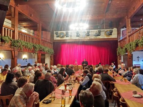 Zum Auftakt des Jubiläumsjahres „200 Jahre Gemeinde Übersee“ konnte Gustl Lex mit dem Vortrag „Das Leben anno dazumal“ gewonnen werden. Im sehr gut gefüllten Saal des Wirtshaus d´Feldwies wusste er, wortgewandt und unterhaltsam das Publikum zu begeistern. Dabei griff er Themen wie Schule, Arbeitsverhältnisse in der Landwirtschaft und auch Nahrung auf. Passend dazu servierten Wirtin Beate Stang und Küchenchef Andreas Hoy Gerichte „wia vor 200 Jahr“: Brotsupp´n, Weißkraut mit schwarz geräuchertem Wammerl, Rotbachane mit Bohnatunk und Maisbrei mit Apfelmus. Musikalisch begleitet wurde der äußerst informative Vortrag von Thomas Hiendl und seinem Sohn Korbinian auf ihren Ziach. Abschließend kann gesagt werden, dass die Auftaktveranstaltung die Neugierde auf die Ausstellung „200 Jahre politische Gemeinde Übersee 1818 – 2018“, die bis zum 13. Mai täglich zwischen 17:00 und 20:00 Uhr in der Galerie im Wirtshaus d´Feldwies besucht werden kann, umso mehr geweckt hat.