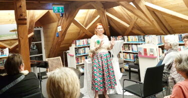 Der Igel Fritz Stachelwald suchte einen geeigneten Schlafplatz für den Winter. Dabei wurde er unterstützt von den Musikern des Ensembles Ohrenschmaus, Johanna Hartmann (Flöte), Barbara Scharnagl (Violine, Tanz), Verena Meurers-Zeiser (Harfe) und als Gast Monika Gaggia (Cello). Begleitet von einem Vogel wanderte Fritz Stachelwald am Teich vorbei, spürte den Herbstnebel und fand schließlich einen Schlafplatz. Auch ein wunderschöner, Cello spielender Schwan war zu sehen.