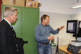 Konrad Maier, Abteilungsleiter der Werkstätten, erklärt die Maschinen und die Kontrollsysteme.