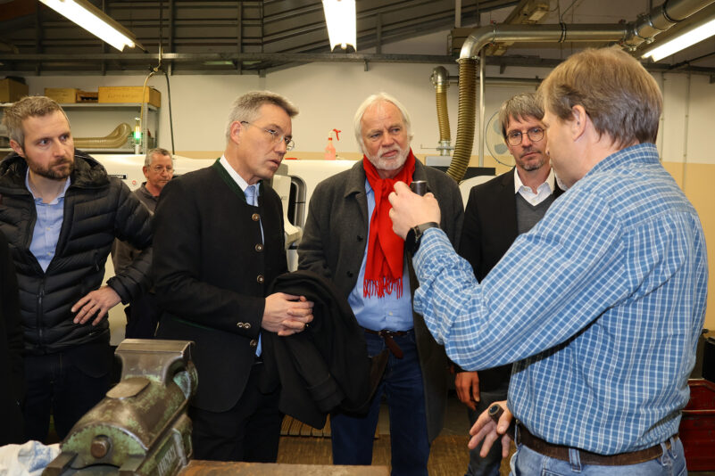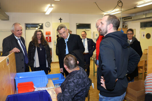 Landrat Otto Lederer besichtigt zusammen mit Werner Gartner, zweiter Bürgermeister von Wasserburg am Inn, Andreas Bensegger von der IHK und einer Delegation aus dem Landratsamt die Inntal-Werkstätten der Stiftung Attl.