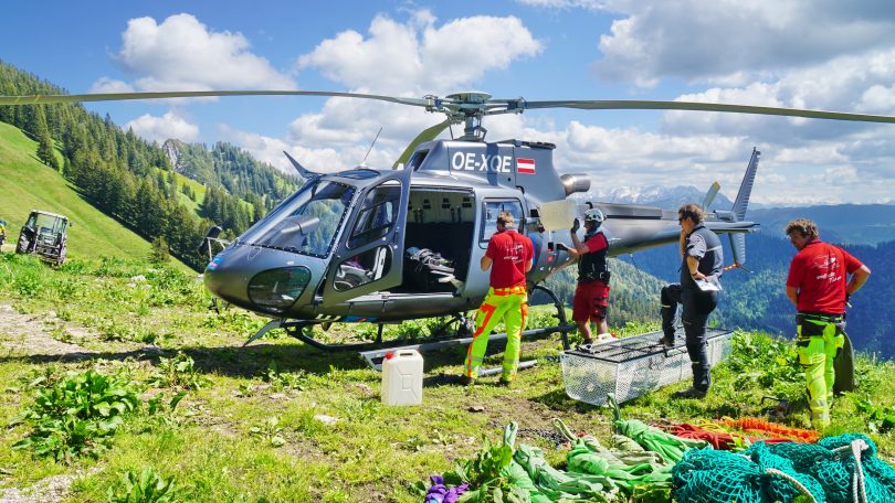 Helden der Lüfteein Gast-Beitrag vom Almwirtschaftlichen Verein Oberbayern (AVO): Langjährige Almbauern-Leser (der Zeitschrift vom AVO) wissen sofort, dass sich unter diesem Titel weder ein Bericht zum majestätischen Adler oder imposanten Bartgeier findet, sondern dass es sich um die alljährlichen Hubschrauber-Versorgungsflüge unserer nicht erschlossenen Almen handelt. Die Vorgehensweise ist stets die gleiche: die Almbauern melden die geschätzte Anzahl der Flüge unter der Vorgabe, dass die Packerl im Regelfall ein Gewicht bis zu 750 kg haben sollten. Schwerere Lasten bis zu 950 kg wie beispielsweise große Wassertröge, können auch transportiert werden, müssen aber im Vorfeld benannt werden. Dann muss beim Tanken aufgepasst werden, dass nicht zu viel Sprit an Bord ist, um Gewicht zu sparen.