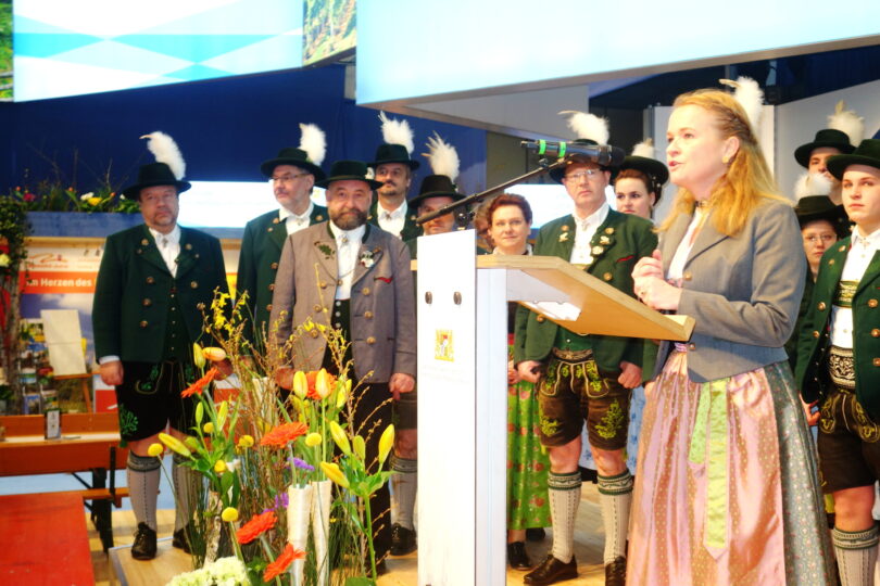 Foto: Hötzelsperger – Sprecherin Regina Wallner (aufgenommen in der Bayernhalle bei der Grünen Woche in Berlin 2023 mit dem Gauverband I)