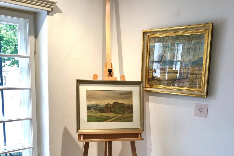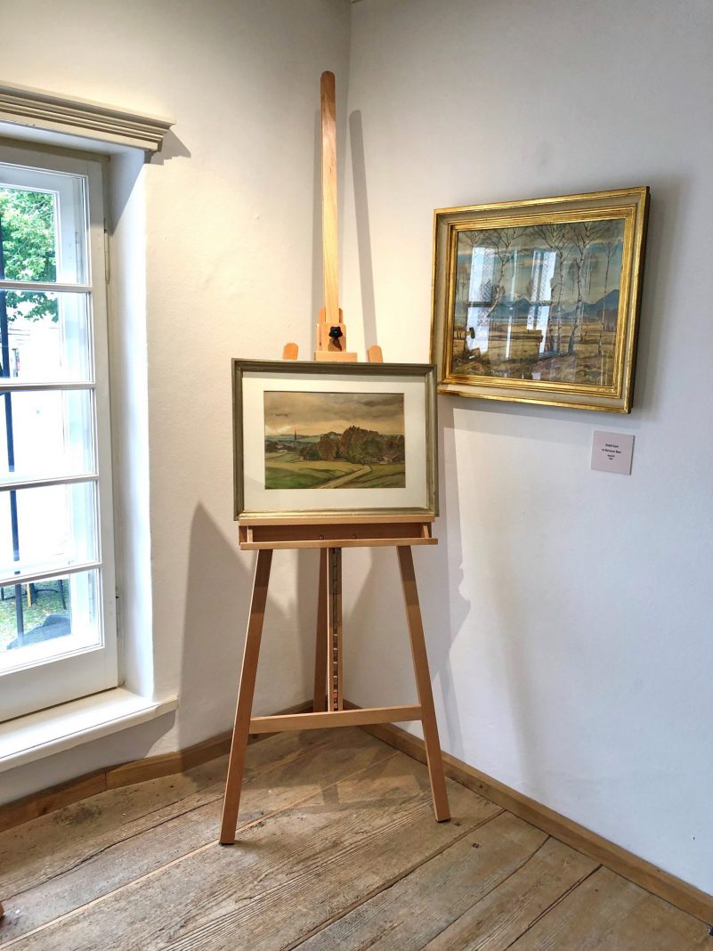 Foto: Prien Marketing GmbH – An der Wand: Rudolf Sieck, Im Harrasser Moor, 1942. Auf der Staffelei: Rudolf Sieck, Blick von Pinswang nach Prien, um 1930.