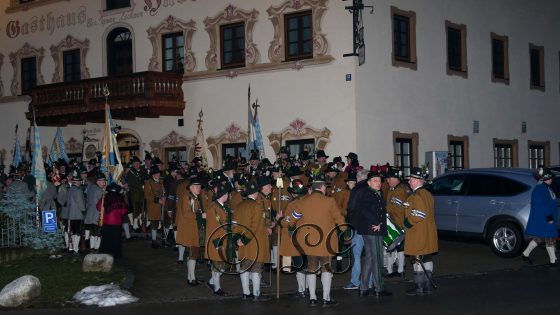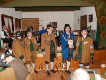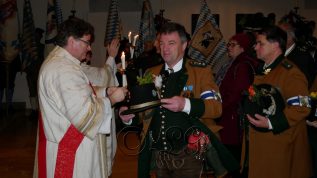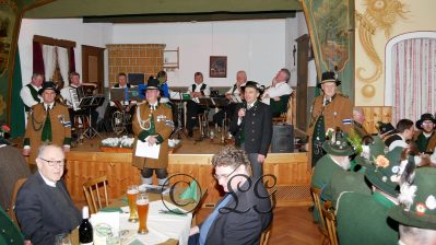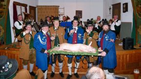 Hauptmann Wilhelm Schmidt bedankte sich bei den Abordnungen der Gebirgsschützenkompanien und Ortsvereinen für ihre rege Teilnahme am Jubiläumsfest. 1. Bürgermeister Olaf Karlsberger sprach lobende Grußworte und Landeshauptmann Martin Haberfellner brachte in kurzen Worten das Entstehen und den Sinn der Gebirgsschützenkompanien dar. Nach der Ehrengabe, einer besonders verzierten Lichtmeß-Kerze an alle teilnehmenden Fahnenabordnungen, überreichte die Ehrenkompanie Aibling ein Ferkel als Ehrengabe für den Jubilar. Unter den Klängen der „Holzhausener Theater-Musi“ klang ein wunderschöner Festabend aus.