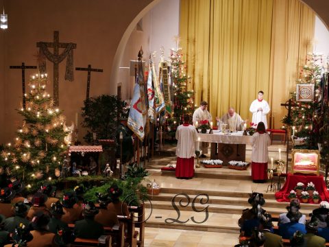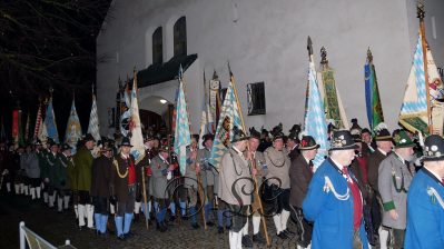 Mit einem beeindruckenden Fackelzug ausgehend vom Huberwirt in Raubling, marschierten die Abordnungen der Gebirgsschützenkompanien, drei Tiroler Schützenkompanien, die Ortsvereine mit insgesamt 25 Fahnen und der Trommlerzug zur Kirche Hl. Kreuz, in der der Festgottesdienst stattfand.