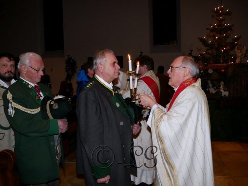 Die Hl. Messe wurde vom geistlichen Rat Lorenz Poschenrieder und Diakon Josef Jackl feierlich zelebriert. In seiner Predigt sprach der geistliche Rat Lorenz Poschenrieder, dass sich die Gebirgsschützenkompanie „Oberer Wasen“ Raubling vor 15 Jahren wiedergegründet hat und das sie die 47 Kompanie im Bund der bayerischen Gebirgsschützen ist. Laut ihm war es eine gute und glückliche Idee, dass sich diese Gebirgschützenkompanie ins Leben rief, denn mit ihrer schmucken Montur tragen sie verstärkt zum Erhalt der Tracht und der wunderschönen alpenländischen Heimat zwischen Reichenhall und dem Werdenfelser Land bei. “Dass unsere Heimat so ist wie sie ist, verdanken wir zu einem großen Teil dem Christentum. “, so der Pfarrer weiter und fügte hinzu: “Menschen die sich vom Christentum leiten ließen haben aus unserem Land gemacht, was es heute ist. Denn ohne Christentum sehe unser Land anders aus. Die Gebirgsschützen zeigen, dass Schutz der Heimat und das Bekenntnis zum angestammten Glauben untrennbar verbunden sind.”. Nach der Messe, dem „Blasiussegen“ und dem Rückmarsch, fand die offizielle Feier in der Gaststätte Huberwirt in Raubling statt.