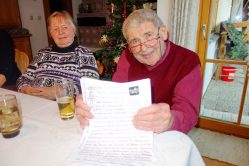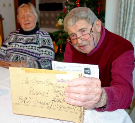 Mit seiner Loni und mit seiner Betreuerin Monika machte er sich zum Jahresanfang auf den Weg nach Wildenwart, das er seit seinem Wegzug vor gut 80 Jahren zwar immer wieder mal besucht hatte, aber doch kaum noch persönliche Kontakte mehr hatte. Der neue Kontakt kam zustande, weil Wildenwarter auf der Online-Nachrichten-Seite Wasserburger Stimme von einem Wasserburger Kalender 2020 berichtet wurde. Der Kalender zeigt Foto-Aufnahmen von Konrad Reisböck und in der Vita wird auf die Kindheit in Wildenwart hingewiesen. Recherchen der Wildenwarter führten zum Erfolg und zur nunmehrigen Einladung nach Stupfa bei Wildenwart bei Rita Aicher und ihrem Mann Georg, der mit 87 Jahren ein Jahr jünger ist als Konrad. Rita Aicher war eine der Röselsberger-Töchter, die sich noch gerne an Konrad, seine Kindheit und seine späteren Besuche erinnern. Bis heute hat Konrad Reisböck mit der Loferer-Familie zwar selten, aber doch immer wieder Kontakt gehalten. So brachte Peter Loferer, bei dessen Oma Konrad als Baby Aufnahme fand, Briefe mit, die Konrad nach Röselsberg sandte. In diesen Briefen beschreibt er seine Freude mit den Bildern seiner Nikon-Analog-Kamera. Chronologisch interessant hat der Hobby-Fotograf seine Aufnahmen in vielen Alben festgehalten. Einige dieser Alben brachte er zum Treffen nach Stupfa mit, die Bilder-Erinnerungen war natürlich beste Grundlage für einen regen Gedankenaustausch.