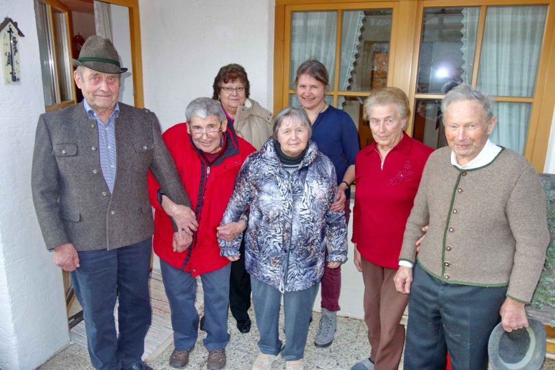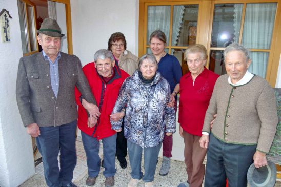 - Von links: Peter Loferer, Konrad Reisböck, Rosi Loferer, Loni, Monika, Rita und Georg Aicher.