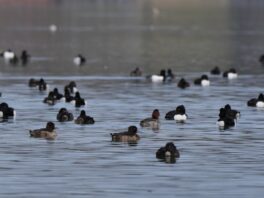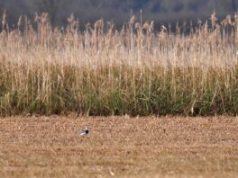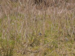 Auf dem See sind noch jede Menge Enten als Wintergäste zu sehen, etwas die viele Reiherenten mit der Schmuckfeder auf dem Kopf. Schaut man aber auf den Streuwiesen etwas genauer hin, so entdeckt man dort noch ziehende Pieper, aber auch schon die ersten heimischen Wiesenbrüter.