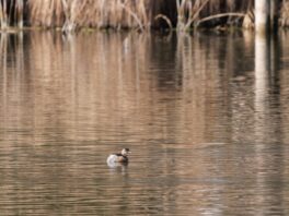 Auch auf dem See lohnt sich noch das genaue Beobachten. Neben den Duckanderl, also Zwergtauchern, entdeckt man manchmal ein etwas größeres Exemplar. Der Rothalstaucher färbt sich schon wieder ein und sein markanter gelber Schnabel leuchtet in der Sonne.