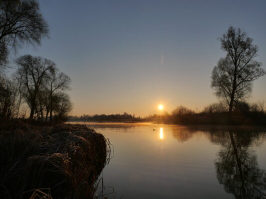 In der Karwoche zeigt sich doch noch die Sonne, wenn es auch noch richtig kalt ist. An der Prienmündung zaubert die Sonne eine wunderbare Stimmung, während das weibliche Blaukehlchen noch ein wenig verfroren im Busch sitzt.