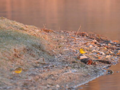 Am Ufer suchen die Wiesenschafstelzen nach Nahrung auf ihrem Heimzug.