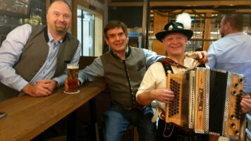 Auch echte “Wies’n-Stimmung“ ist in dem urigen bayerischen Wirtshaus angesagt, mit den Wiesn-Hits der Live-Musik des Hauses. Zur Unterstützung hat Geschäftsführer Frank Sotola auch Musiker vom Verein der Bayern in Berlin angefordert. So hat Felix Lämmel, der Steirer-Bua vom Verein, den letzten Oktober-Festabend mit traditioneller bayerischer Wirtshausmusik musikalisch umrahmt. Dazwischen hieß es immer wieder „Oans, Zwoa, Drei, Gsuffa”. Es war sicherlich nicht der letzte stimmungsvolle Oktoberfest-Abend in Berlins Mitte, an der Friedrichstraße. Mit dem Begrüßungsspruch am Eingang „Hock di hera, samma mehra“ heißt Maximilians seine Gäste herzlich willkommen.