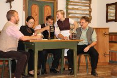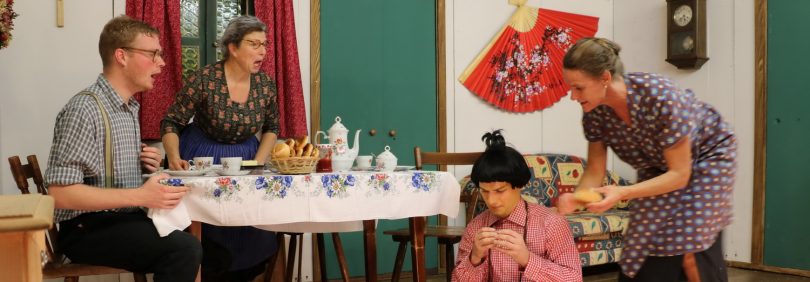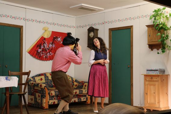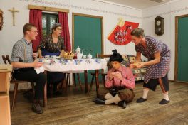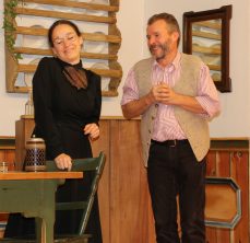 Bloß gut, dass Theaterleiterin Sylvia Riepertinger alle Fäden gut in der Hand hat und alle Spieler ihre Rollen souverän beherrschen. Souffleuse Sabine Till gab alleine durch ihre Anwesenheit den Spielern den notwendigen Rückhalt. So zogen alle Akteure wieder ein Feuerwerk von Pointen auf der Bühne der Schlosswirtschaft durch, die Steißbeiner Oma (Rita Stoib) hatte bei jedem ihrer Auftritte die Lacher auf ihrer Seite. Doch auch die Liebe soll nicht zu kurz kommen: die Gretel beim Wirt (Martina Huber) und der Rudi Steißbeiner wären sich ja schon einig, aber durch den fremden Gast kommt ein Mordsdurcheinander in die Beziehung, da muss die resolute Gretel ihrem Rudi den Kopf ganz gehörig zurechtsetzen. Auch für das späte Mädchen Mathilde Muckerl (Helga Grießer) strahlt mit Hilfe von Bene Schloderer (Stephan Baumgartner) noch einmal die Sonne des Lebens auf und aus dem hässlichen Entlein wird ein strahlender Schwan. Und so heißt es am Ende in der Schlosswirtschaft schließlich für alle „Sayonara Huglfing“. Letzte Frage: Was hat er den jetzt gegessen der Gast aus Japan: Nasi Goreng oder Schweinsbraten? Das sollte sich jeder am besten selber anschauen, aber die letzten beiden Aufführungen sind bereits ausverkauft.