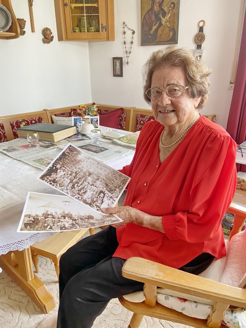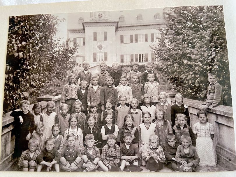 Bei einem Besuch in ihrer Rosenheimer Wohnung erklärte die rüstige Pensionistin zwei Aufnahmen, die Wildenwarter Schüler 1933 vor dem Königsschloss und 1934 vor der im gleichen Jahr eingeweihten Wildenwarter Pfarrkirche „Christkönig“ zeigen. Bis auf zwei Ausnahmen konnte sie allen Kindern noch Namen und Herkunft aus den Dörfern der ehemaligen Gemeinde Wildenwart zuordnen. Auch Rosa Bohrer aus Wildenwart, mit 92 Jahren etwas jünger als Franziska Mühlthaler, kann sich noch an viele der Gesichter erinnern, zumal doch auch ihr verstorbener Mann Georg Bohrer auf dem Schloss-Foto (rechts auf der Ballustrade sitzend) zu sehen ist. Ergänzend sagt Frau Mühlthaler: „Die Bilder haben wir bekommen, weil wir eine so kinderreiche Familie waren, den Namen des Fotografen wissen wir leider nicht mehr“. Großen Wert hat sie immer auf regelmäßige Klassentreffen gelegt, dabei wurde sie für den Wildenwarter Bereich von ihrer Schwester Gretl und von Anni Faust (geb. Dietl) unterstützt. Für die Jahrgänge 1919 bis 1929 gab es die Treffen alle fünf Jahre, anfangs waren es rund 50 ehemalige Schülerinnen und Schüler und zuletzt waren es noch elf Leute. Ihr letztes Klassentreffen, zu dem sie eingeladen war, war im heurigen Sommer in Aschau i. Chiemgau.