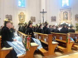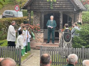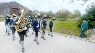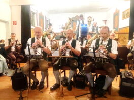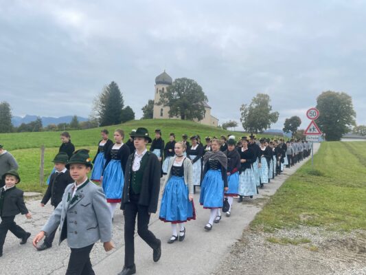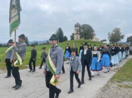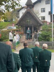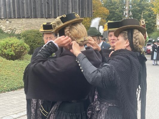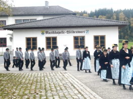 Heuer war der Trachtenverein Atzing sogenannter Ausrichter. Dessen Vorstand Konrad Huber erinnerte daran, dass die verstorbenen Vereinsmitglieder die Grundlage für die heutige Freude an der Brauchtumspflege gelegt haben und er ergänzte aufgrund sorgenvoller Blicke in die Weltpolitik und zu gesellschaftlichen Veränderungen: „Nicht nur von außen sind wir Anforderungen, Ansprüchen und Veränderungen ausgesetzt, eine weitere Gefahr ist es, wenn wir uns selbst zurückziehen sowie oberflächlicher und gleichgültiger werden“. Gemeinsam und im Sinne, dass die Opfer der Kriege und die verstorbenen Vorfahren keineswegs vergessen werden dürfen, legten Konrad Huber sowie Vorstand Helmut Freund vom GTEV Wildenwart jeweilige Kränze im Friedensdenkmal von Prutdorf nieder. Zuvor sprach Pfarrer Philipp Werner noch Gebete, musikalisch begleitet wurde die Gedenkfeier von der Blaskapelle Wildenwart. Diese sorgte bereits in der Pfarrkirche unter der Leitung von Johanna Rosenwink und abschließend im Saal der Wildenwarter Schlosswirtschaft für den passenden Rahmen. „Tracht ist nicht nur schön anzuschauen, sondern eine Haltung“ – diese Dankes-Worte des Pfarrers in der Kirche und die Ankündigung, dass die Wildenwarter Blaskapelle zu ihrem heurigen Herbstkonzert am Samstag, 22. November mitsamt seinem Nachwuchs in der Frasdorfer Lamstoahalle einlädt – waren weitere Bestandteile eines würdigen und frohen Trachtenjahrtages für Wildenwart und Atzing. Der nächste blasmusikalische Termin für die Wildenwarter und Chiemgauer ist am kommenden Kirchweihsonntag, wenn nach dem Gottesdienst (Beginn 8.30 Uhr) ab 10 Uhr zwischen Pfarrkirche und Musikheim ein Herbst-Markt des Musikfördervereins angeboten wird. Dabei werden auch junge und ältere Wildenwarter Musikanten aufspielen.