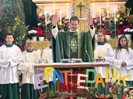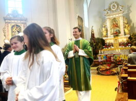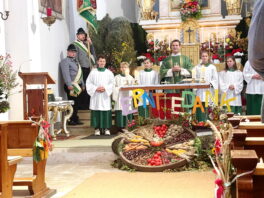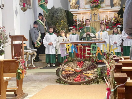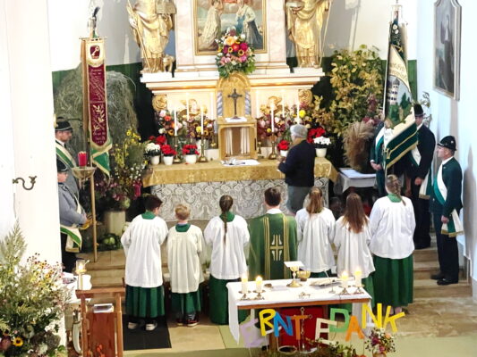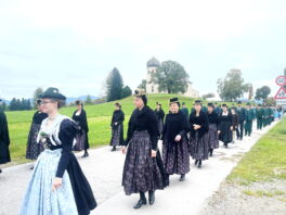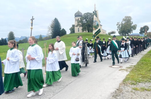 „Gerade zur Zeit der Erntedankfeierlichkeiten wollen wir uns bewusst machen, dass wir miteinander leben, miteinander gehen und dass wir hier in der Kirche Christkönig von Wildenwart unsere gemeinsame Mitte finden können und haben“ – mit diesen Worten begann Pfarrer Philipp Werner vom Pfarrverband Westliches Chiemseeufer den Gedenk-Gottesdienst der beiden Trachtenvereine „Die lustigen Wildenwarter“ und „Daxenwinkler“ Atzing. Deren Miteinander-Jahrtag für die gefallenen und verstorbenen Vereinsmitglieder hat auch über die Gebietsreform im Jahr 1978 hinaus für die nunmehrige Alt-Gemeinde Wildenwart Bestand gehalten.
