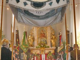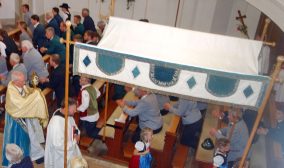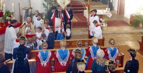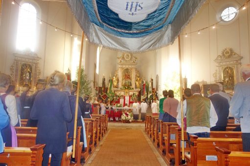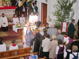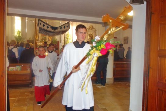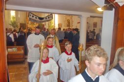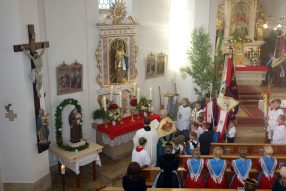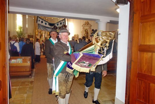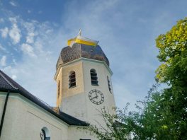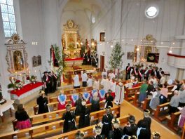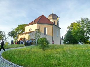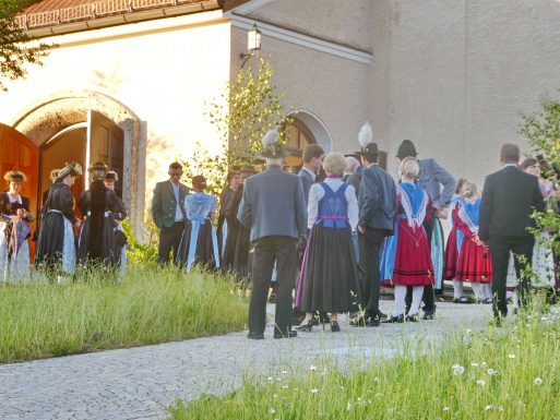 Richtig Pech hatte die Pfarrgemeinde “Christkönig” von Wildenwart an Fronleichnam: Während es tagsüber sommerlich-sonnig war kam gerade zum Beginn der abendlichen Feierlichkeiten ein Gewitter. Dieses zwang zur Absage der Prozession über die heimischen Fluren, so dass die vierstufige Gesangs- und Gebets-Prozession in der Kirche mit dem Hauptaltar sowie mit den Seitenaltären durchgeführt wurde. Für den feierlichen Chrarakter sorgten Pfarrer i. R. Walter Kronast, der  liturgische Dienst sowie der Kirchenchor unter der Leitung von Liesi Huber. Als die Kirchenprozession vorbei war, war draußen wieder bestens Freiluft-Wetter…!