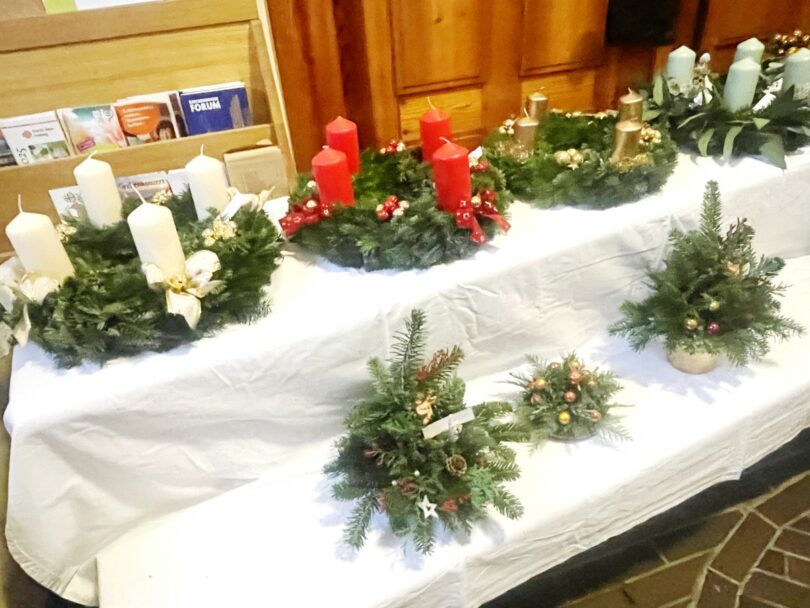 So wie viele Frauen und Männer im Stillen hilfreich anderen Menschen innerhalb der Hospizbewegung zur Seite stehen, so gibt es auch innerhalb der Pfarrgemeinde „Christkönig“ Wildenwart immer wieder fleißige Frauen, die mit ihren geschickten Händen in den Wochen vor der staaden Zeit für die Advent- und Weihnachtszeit basteln und Gutes tun.