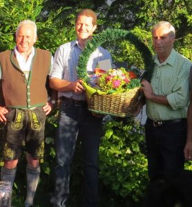 Die Vorstandschaft der Jagdgenossenschaft Frasdorf-Wildenwart und die Wildenwarter Jäger bedankten sich beim scheidenden Vorsitzenden der Jagdgenossenschaft Hans Bauer, der den Verband 28 Jahre geführt hatte. Von links zweiter Vorsitzender Josef Riepertinger, Vorsitzender Josef Held, der bisherige Vorsitzende Hans Bauer,