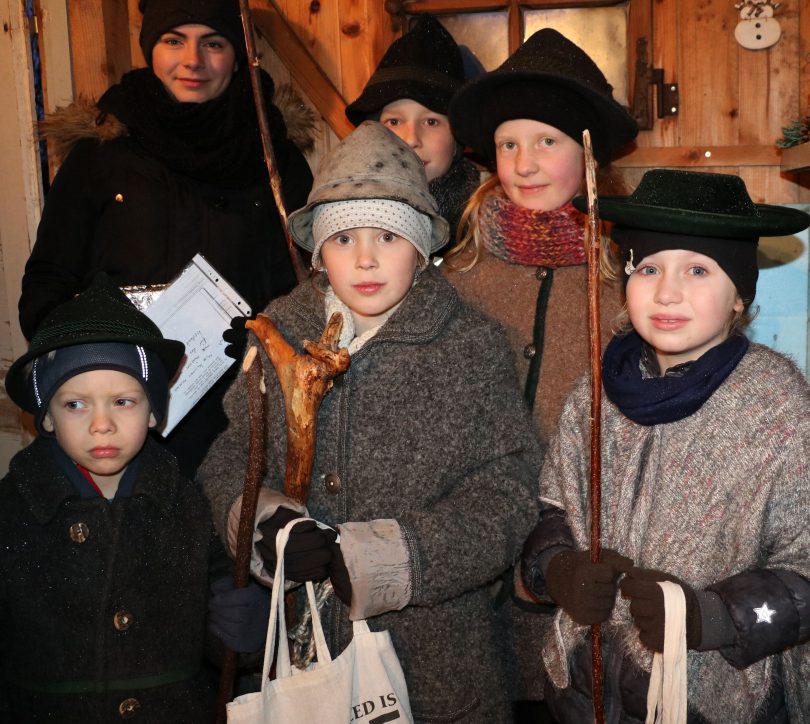 „Heut ist die heilige Klöpfeles-Nacht“. Am ersten und zweiten Donnerstag im Advent sind die Klöpfelnächte, am letzten Donnerstag vor Heiligabend wird traditionell nicht mehr geklöpfelt. Die Klöpfelnächte stehen symbolisch für die Herbergssuche von Maria und Josef. Die Trachtenvereine der Region haben den alten Heischebrauch – als Antwort auf den neu eingeführten Brauch von Halloween – in den letzten Jahren wieder belebt und die Kindergruppen freuen sich, dass sie mit dem Gesammelten helfen können. Ein wenig bleibt auch für sie selbst über. 47 Kinder des Trachtenvereins „Die lustigen Wildenwarter“ zwischen vier und 16 Jahren zogen in sieben Gruppen von Haustür zu Haustür, sangen ihre guten Wünsche für Haus und Hof und baten schließlich um eine Gabe. „Wir wünschen den Hausleut viel Segen und Glück“, verabschieden sich die Kinder, nachdem sie gesungen haben und dafür eine Tafel Schokolade, eine Orange, eine Tüte Selbstgebackenes und auch ein paar Euro in die Kasse erhalten haben. 1557 Euro kamen so innerhalb weniger Stunden zusammen, der Erlös der Sammlung geht in diesem Jahr an Chiemgauer Familien, die in große Not geraten sind.