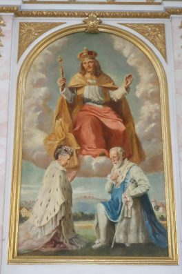 1934, also vor 85 Jahren wurde die Kirche von Wildenwart in schwierigen Wirtschaftszeiten und mit Unterstützung eines eigenen Kirchenbauvereins erbaut. Im Altarbild wurde bereits festgehalten, dass die Kirche auch zu Ehren des Bayerischen Königshauses erstellt wurde, denn in der Mitte des Altarbildes wurde das Königspaar Ludwig III. und seine Ehefrau Maria Theresia malerisch und mit dem wahren „König“ dargestellt. Damit aber nicht genug: aufgrund der Nähe von Wittelsbacher-Schloss und Wildenwarter Kirche gab es Anfang der 50er Jahre eine bemerkenswerte Spende. 1951 kam Johann Strobl als junger Geistlicher und Expositus in die Pfarrgemeinde. Mit ihm kam der Wunsch nach eigenen kirchlichen Festtagen, unter anderem für einen Fronleichnamsumzug. Dieses Anliegen weckte auch die Aufmerksamkeit des Königshauses, das im Schloss residierte. Prinzessin Helmtrud von Bayern, die viele Jahre bis zu ihrem Tod 1977 in Wildenwart lebte und auf persönlichen Wunsch auch auf dem Wildenwarter Friedhof ihre letzte Ruhestätte fand, war mitentscheidend, als für Wildenwart ein erster Fronleichnams-Zug angedacht war. Dazu meldete sich dann das Königshaus und bot an, einen silberbestickten Mantel vom Georgs-Ritter-Orden, den König-Ludwig-III unter anderem bei seinen Krönungsfeierlichkeiten trug, für kirchliche Zwecke in Wildenwart zu stiften. Der ganz besondere, einzigartige und wertvolle Seiden-Samt des Mantels wurde natürlich herzlichst angenommen. Seither wird der sogenannte „Rauchmantel“ bei ganz besonderen kirchlichen Anlässen von den jeweiligen Priestern genutzt. Das Marien-Blau des Mantels zeigt sich auch im „Himmel“, der beim Fronleichnam getragen wird. Auch dessen Stoff stammt aus den wertvollen Spenden der Wittelsbacher Familie von Wildenwart. Für Mesnerin Rita Stoib, die bei allen Gottesdiensten um die richtige Gewandung des oder der Geistlichen bemüht ist, ist natürlich stolz und sie sagt: „Irgendwie kribbelt es bei mir immer, wenn ich das Königliche Gewand hervor hole und in Händen halte, es ist halt etwas Besonderes für uns Wildenwarter“. Die Wildenwarter feiern im übrigen am Sonntag, 24. November ihr Patrozinium, das Fest „Christkönig“.