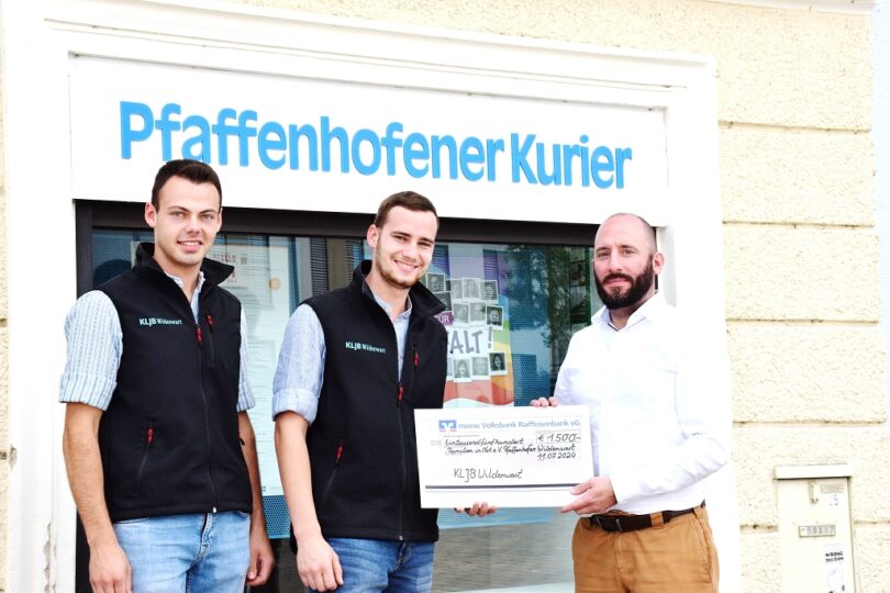 Mit dabei war auch Maxi Aicher, als Kassier der Katholischen Landjugend Wildenwart war er auch nach seiner Heimkehr beeindruckt vom Ernst der Lage und vom erfahrenen Zusammenhalt. Nachdem die Vorstandschaft einen Kassensturz machte, schlug er vor, den Betrag von 1.500 Euro für die Fluthilfe in Pfaffenhofen und für Familien, die in Not geraten waren zu spenden. Nunmehr machte sich Maxi Aicher zusammen mit Lukas Stocker von der Landjugend Wildenwart auf den Weg, um den Scheck an Michael Kraus vom Verein „Familien in Not Pfaffenhofen“ zu übergeben.